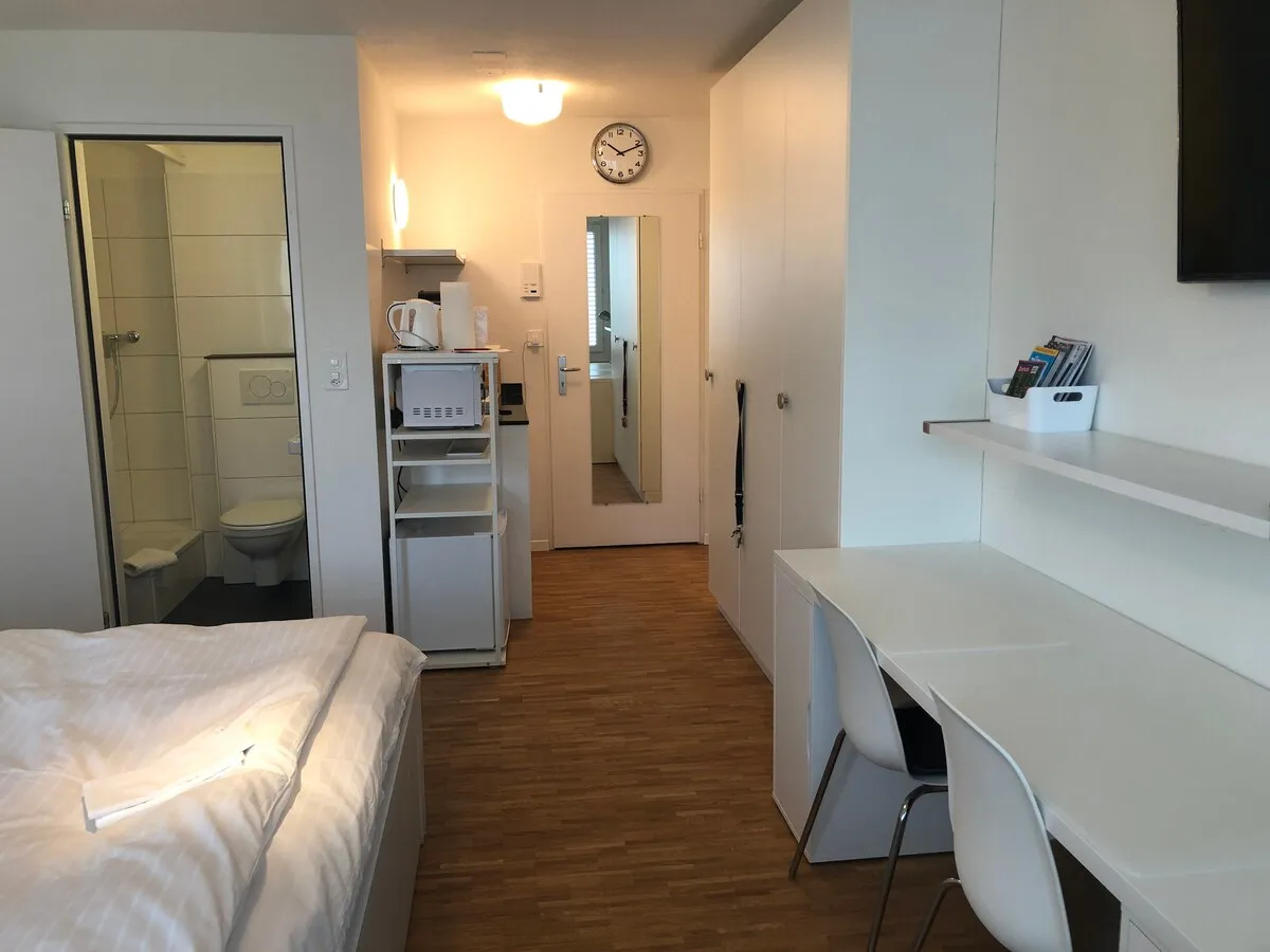 Alle unsere Apartments befinden sich an der Badenerstrasse 414 in 8004 Zürich. Jedes Apartment bietet eine voll ausgestattete Küche, ein eigenes Bad sowie einen komfortablen Wohnbereich mit Schreibtisch – ideal zum Arbeiten und Entspannen. Zur Ausstattung gehören außerdem ein Smart-TV, kostenloses WLAN und eine großzügige Arbeitsfläche. Die regelmäßige Reinigung ist im Preis inbegriffen, ebenso wie sämtliche Nebenkosten. Sie genießen höchsten Komfort mit maximaler Flexibilität – ob für kurze oder längere Aufenthalte.