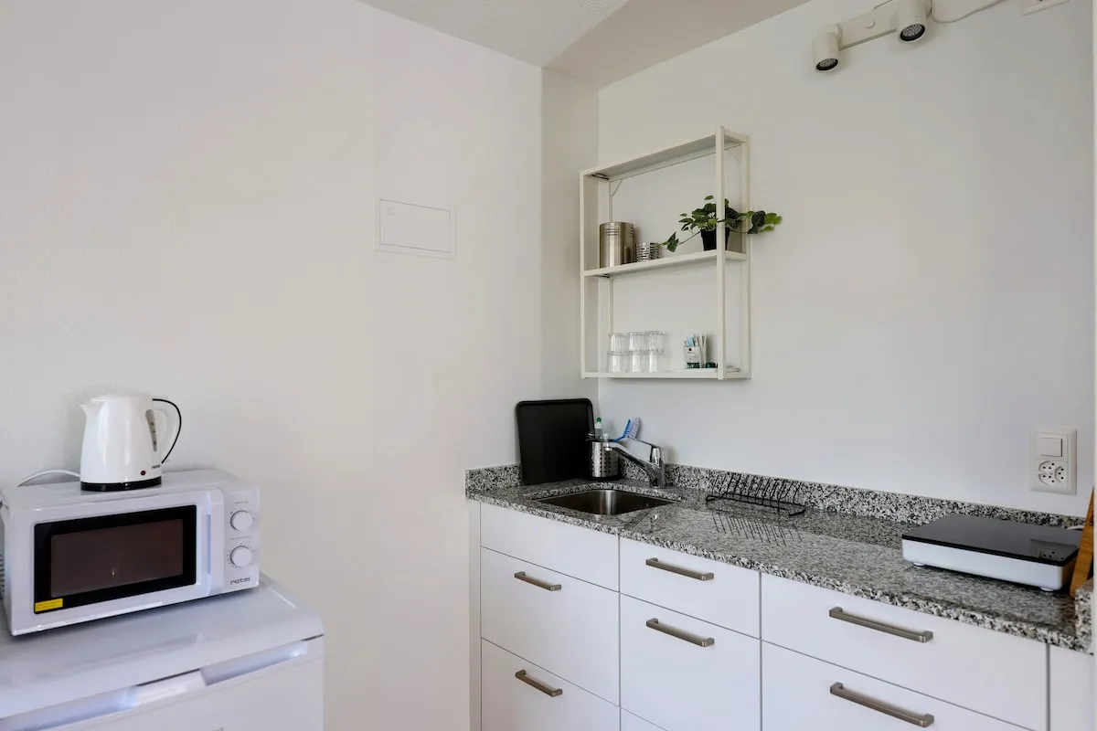 Alle unsere Apartments befinden sich an der Badenerstrasse 414 in 8004 Zürich. Jedes Apartment bietet eine voll ausgestattete Küche, ein eigenes Bad sowie einen komfortablen Wohnbereich mit Schreibtisch – ideal zum Arbeiten und Entspannen. Zur Ausstattung gehören außerdem ein Smart-TV, kostenloses WLAN und eine großzügige Arbeitsfläche. Die regelmäßige Reinigung ist im Preis inbegriffen, ebenso wie sämtliche Nebenkosten. Sie genießen höchsten Komfort mit maximaler Flexibilität – ob für kurze oder längere Aufenthalte.